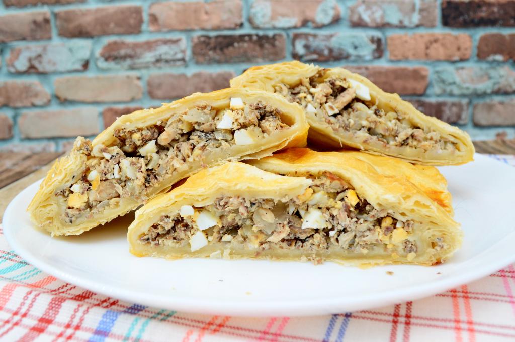 Благодаря луку, рыбная начинка слоёного пирога получится более сочной.