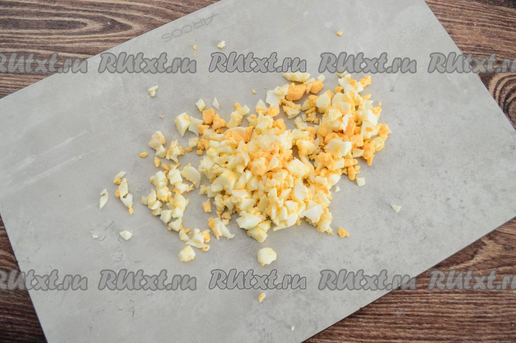 Подготовить продукты. Для этой выпечки можно взять как дрожжевое слоёное тесто, так и бездрожжевое (я купила бездрожжевое тесто). Разморозить при комнатной температуре слоёное тесто. 1 яйцо нужно заранее отварить в течение 10 минут с момента закипания воды, после этого остудить его и очистить.