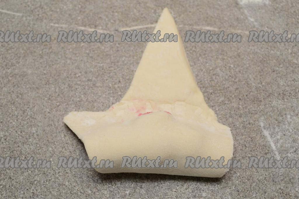 Подвернуть на начинку часть теста с надрезом, немного прижать завёрнутый край теста, чтобы ягодная начинка была закрыта.