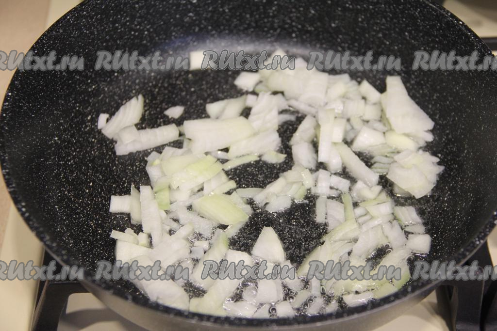 Лук и чеснок мелко нарезать. Хорошо прогреть растительное масло в сковороде, выложить нарезанные лук с чесноком, обжарить их на среднем огне, периодически помешивая, до прозрачности лука (ориентировочно в течение 4-5 минут).
