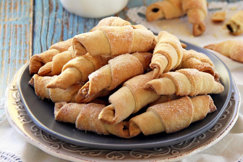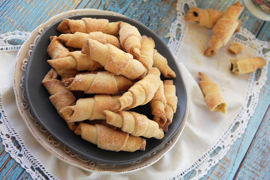 Готовые рогалики достать из духовки, дать немного остыть, переложить на тарелку и можно подавать к столу.