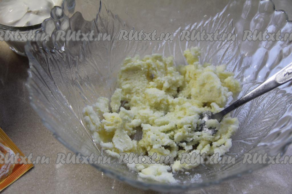 Размять вилкой масло с сахаром до получения однородной массы.