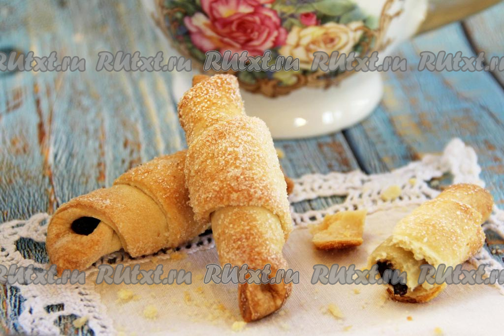 Рогалики с черносливом, приготовленные из теста, замешанного на сметане и сливочном масле, получаются в меру рассыпчатыми, аппетитными, они несомненно порадуют вас своим вкусом!