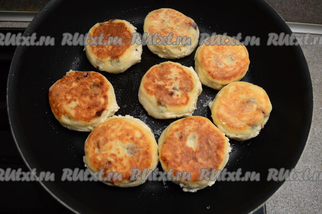 Аналогично, не забывая смачивать руки водой, сформировать 8 сырников с финиками.