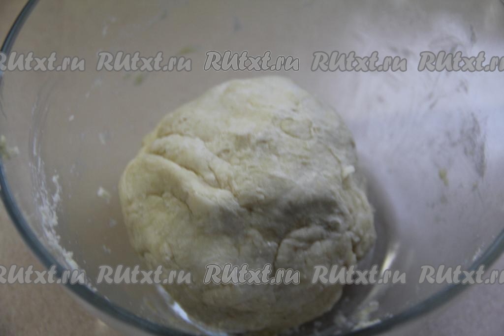 Замесить руками нежное, пластичное, не липнущее к рукам песочное тесто, собирая его в ком. Если тесто будет липнуть к ладоням, тогда добавьте немного муки. Если же тесто не будет собираться в ком, частями добавьте 1-2 столовых ложки воды, тщательно вмешивая воду и собирая песочное тесто в ком. Поместить тесто в пакет и убрать на 15 минут в холодильник.