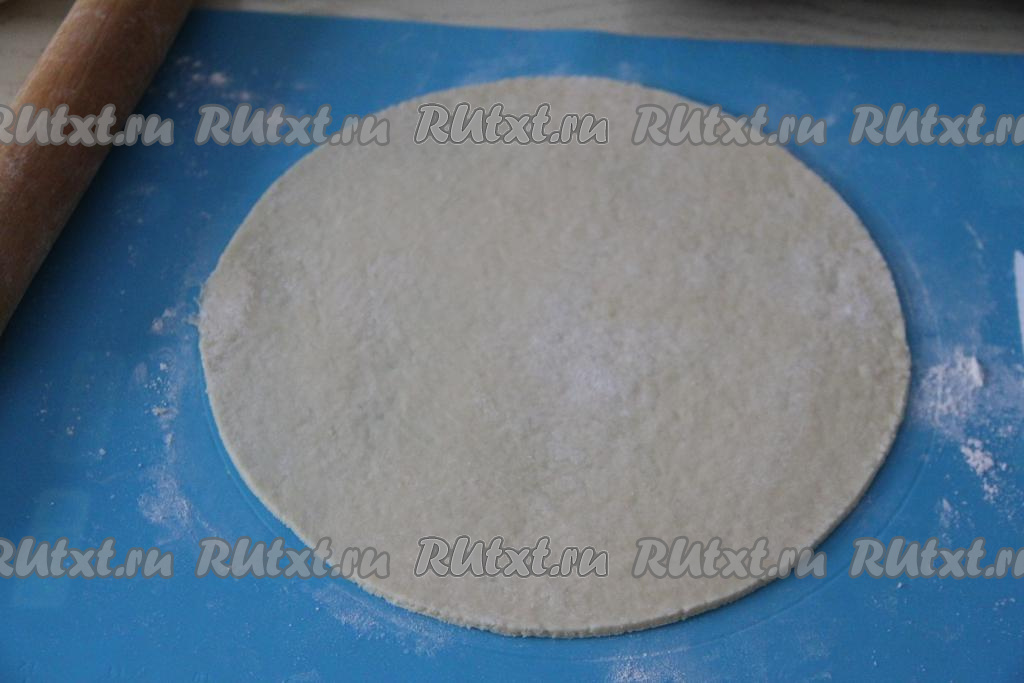 Тесто разделить на три части. Каждую часть теста на присыпанной мукой поверхности раскатать в круг ориентировочно толщиной 3 миллиметра.