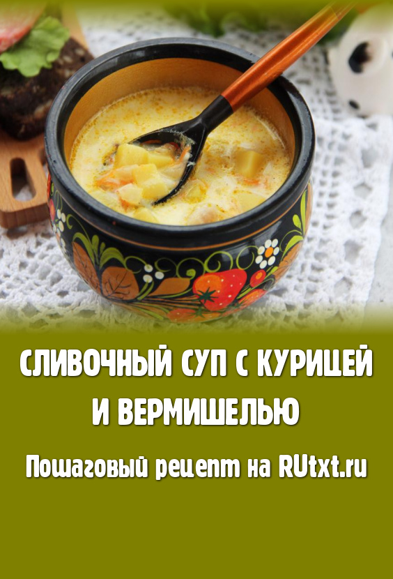 Предлагаю к обеду подать к столу суп, сваренный из курицы с добавлением сливок и вермишели. Готовится это первое блюдо достаточно просто, получается вкусным, сытным, с нежной сливочной текстурой. Этот аппетитный суп с удовольствием едят и дети, и взрослые. Приготовьте сливочный суп с курицей и вермишелью для себя и своих близких и насладитесь его насыщенным вкусом!