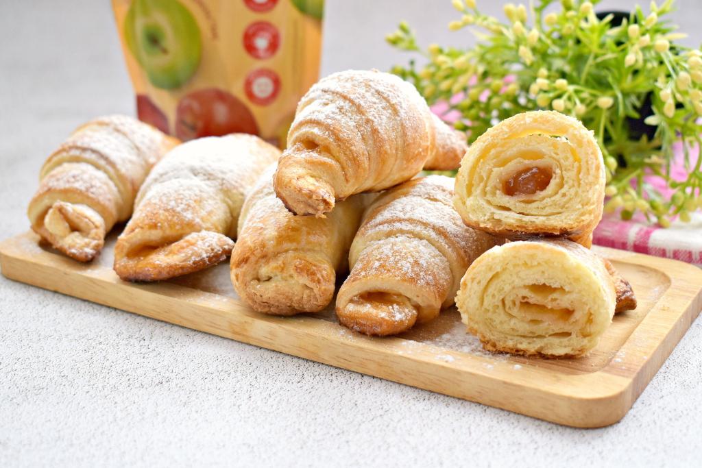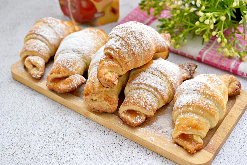 Готовые рогалики с повидлом достаём из духовки. Даём им остыть, по желанию, посыпаем сахарной пудрой. А затем аппетитные, воздушные рогалики из слоёного теста подаём к столу.