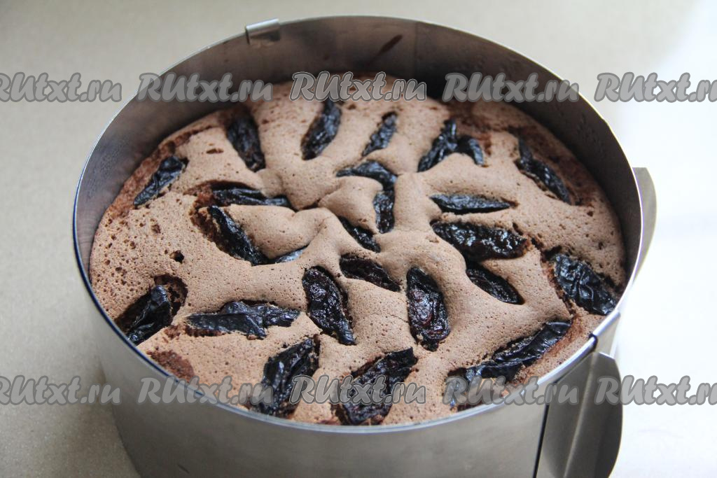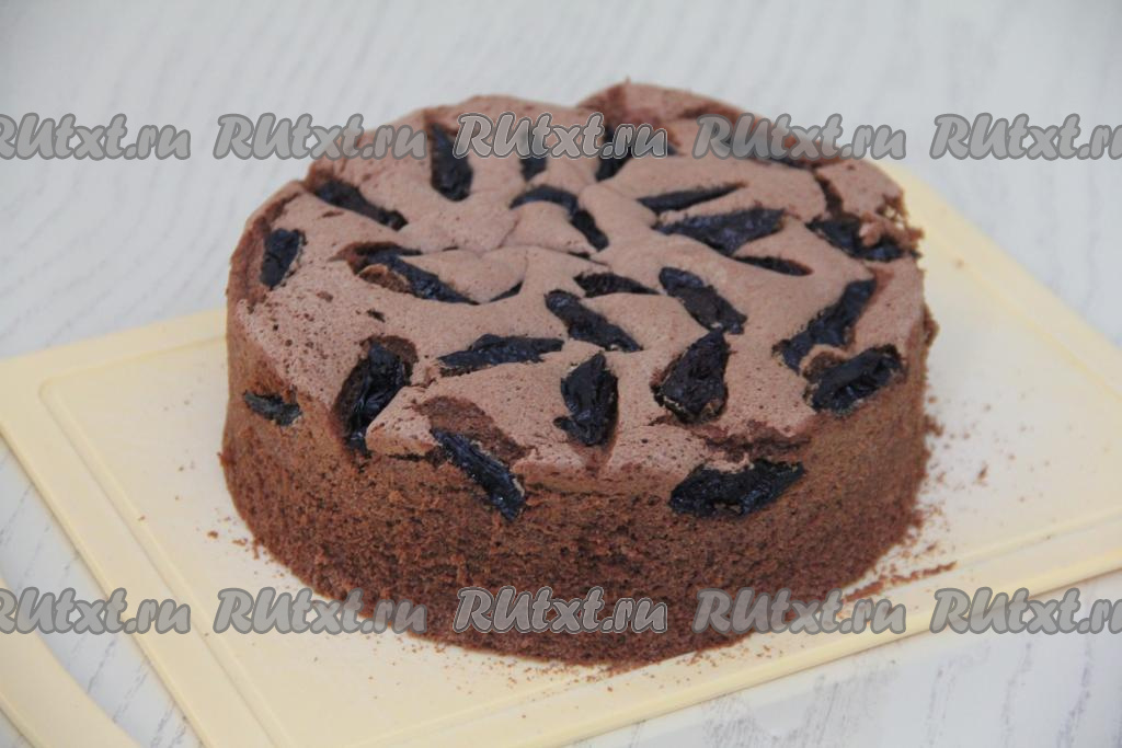 Выпекать бисквит с черносливом в духовке, разогретой до 180 градусов, минут 35-40.