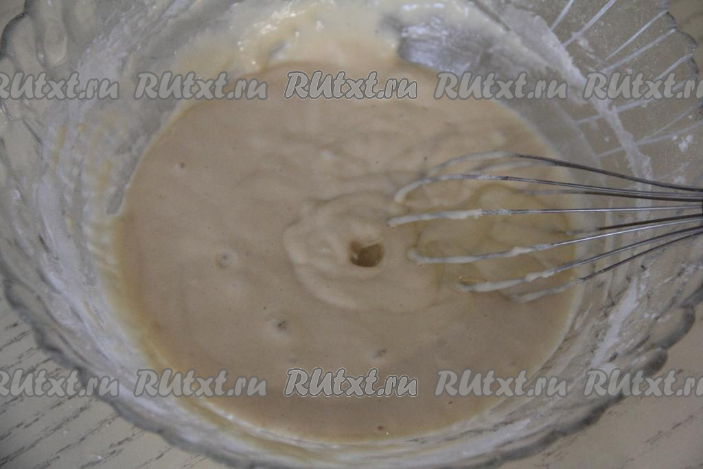 Перемешать тесто венчиком, оно должно получиться в меру густым, однородным.
