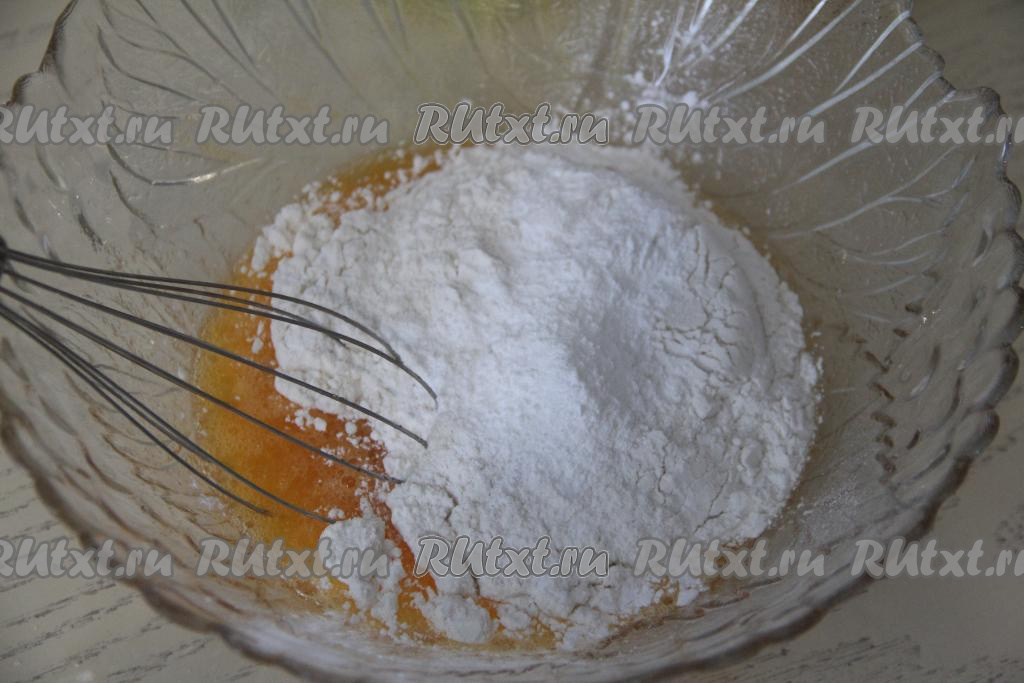 Взбить яичную массу венчиком в течение 2-3 минут (до растворения сахара).