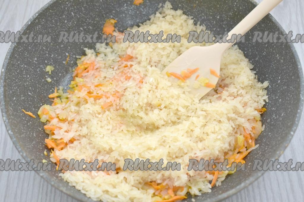 К обжаренным овощам добавляем подготовленный рис.