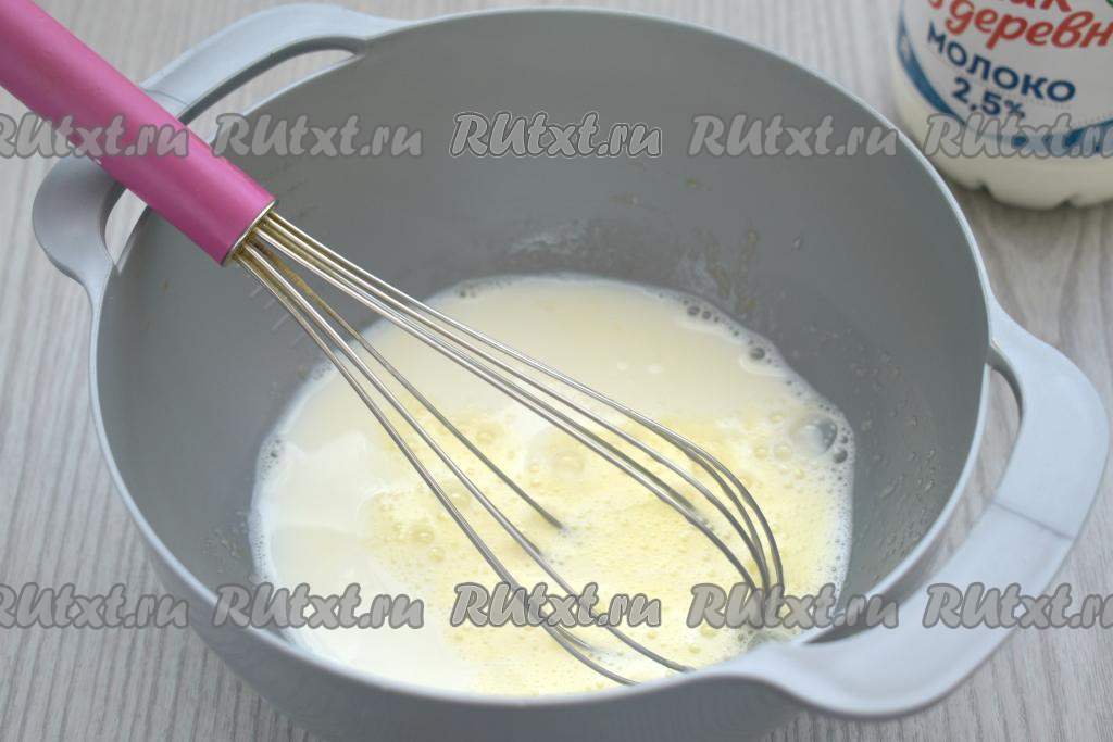 Тщательно перемешиваем яично-молочную смесь венчиком.