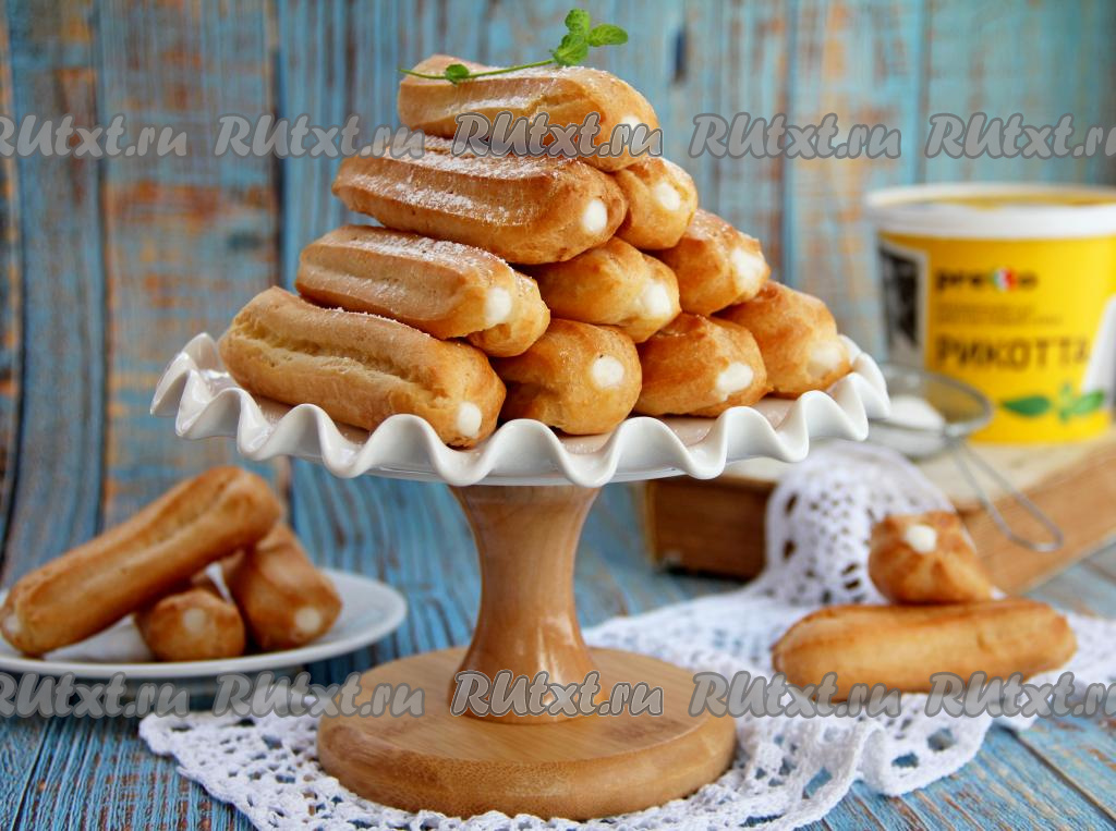 Очень вкусные эклеры с нежной начинкой из рикотты станут идеальным дополнением и к чаю, и к кофе.