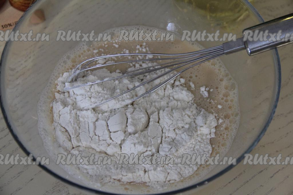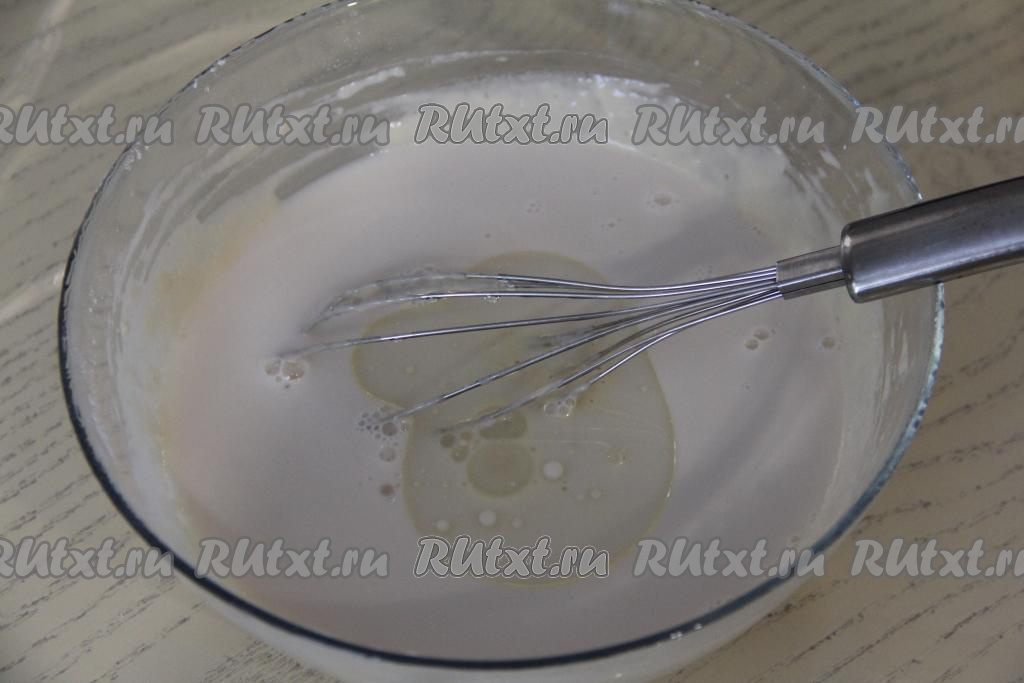 Сразу влить в тесто для блинов 2 столовых ложки растительного масла.