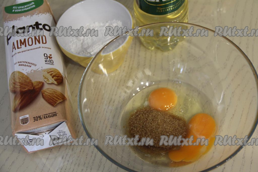В миске соединить яйца и сахар, взбить массу венчиком до однородности (в течение 1-2 минут).