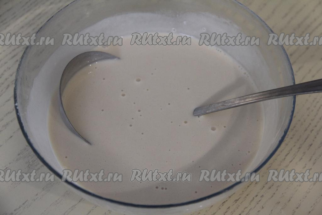 Перемешать тесто и оставить на 10 минут отдохнуть. Тесто для блинов, замешанное на миндальном молоке, получится достаточно жидким, даже можно сказать, что оно льющееся.