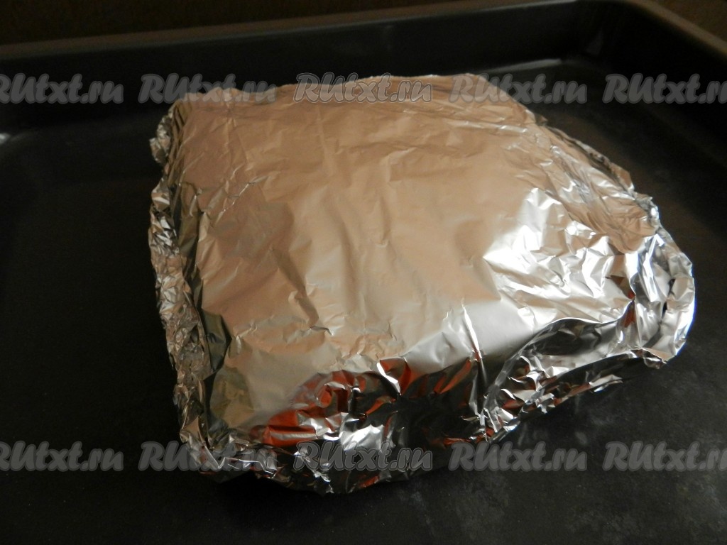 Плотно обернуть мясо фольгой, чтобы не вытекал сок, выделяющийся при запекании.