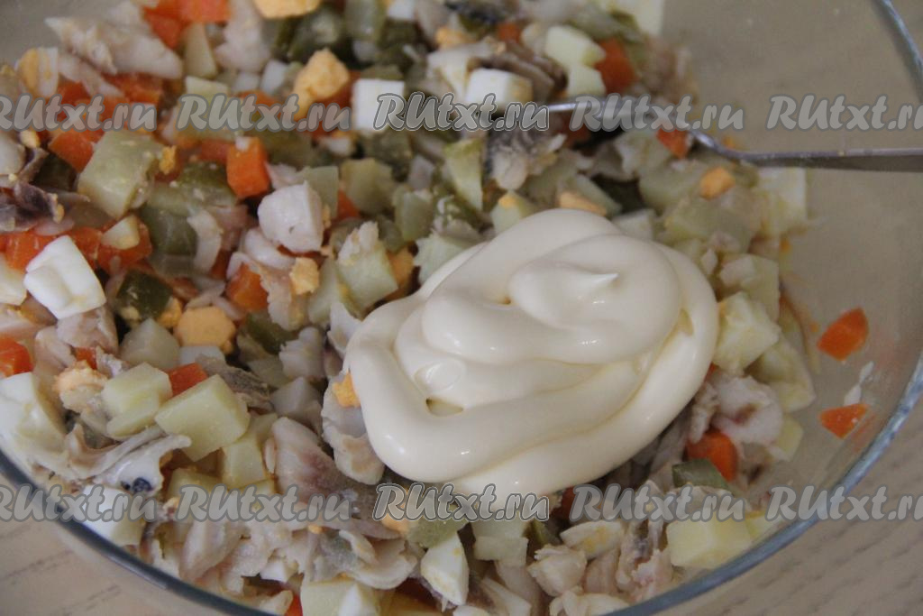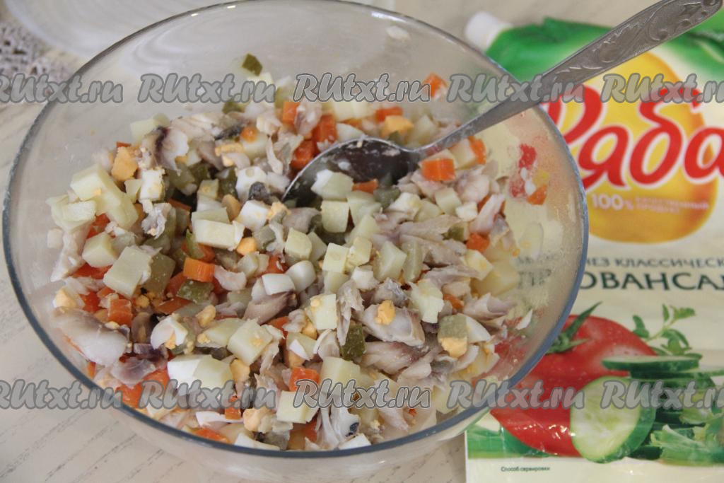 Очень хорошо перемешать рыбный салат.