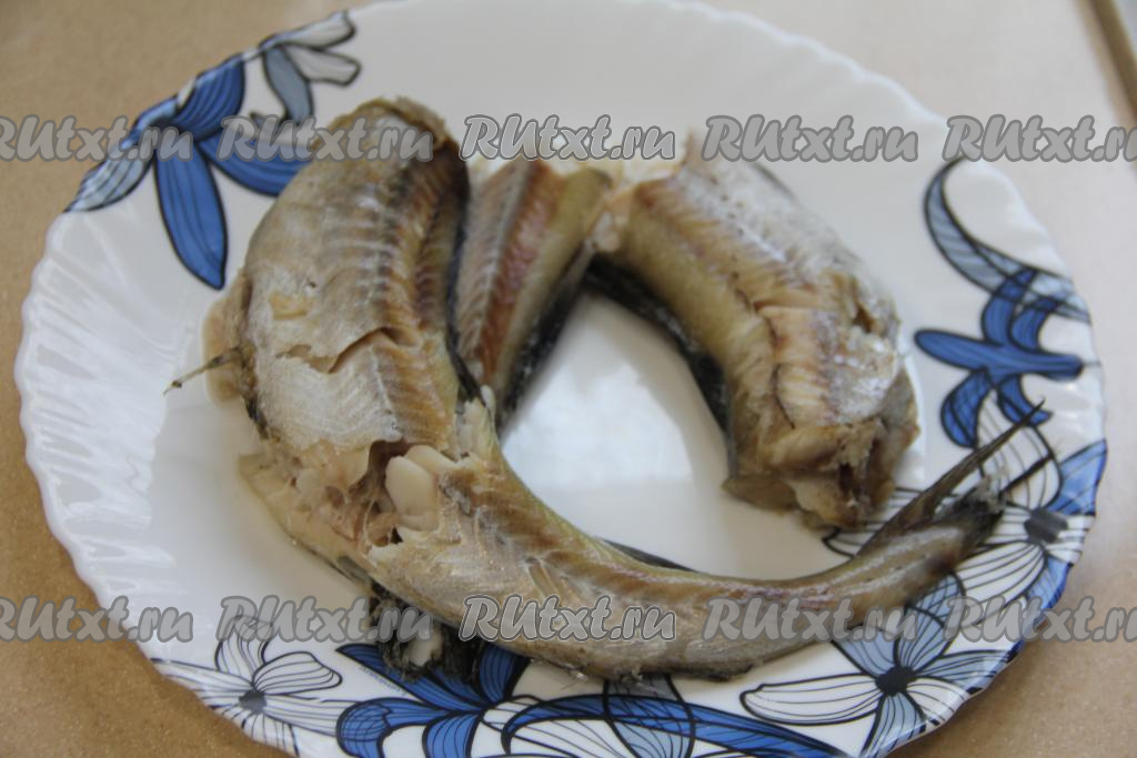 Готовую рыбку достать из кастрюли, выложить на тарелку, дать остыть.