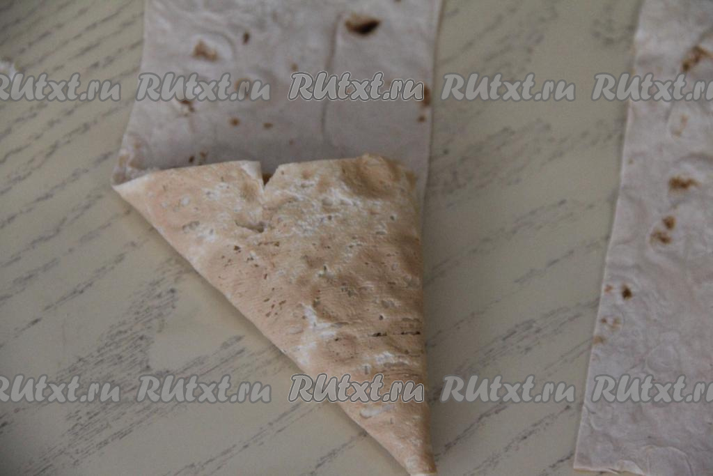 Загнуть край лаваша в виде треугольника.