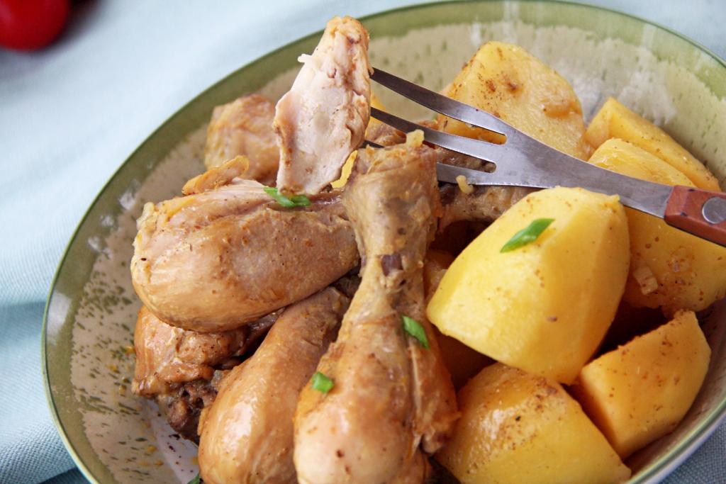 Предлагаю приготовить картошку, тушёную в мультиварке вместе с куриными ножками. Картофель получается нежным, ароматным, мясо курицы - сочным, хорошо попаренным. Это простое, сытное и вкусное блюдо вполне можно подать к столу в качестве полноценного обеда или ужина.