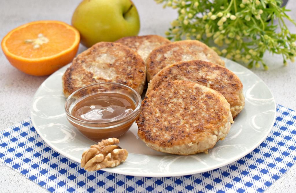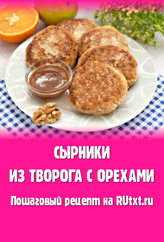 Аппетитные, вкусные, ароматные сырники, приготовленные из творога с орехами, лучше подавать горячими, по желанию, дополнив вареньем, мёдом или сметаной.