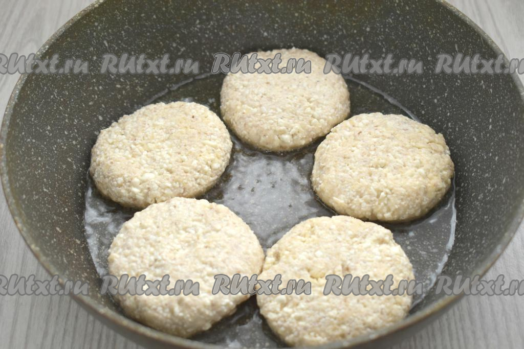 Жарим ореховые сырники примерно по 3 минуты с каждой стороны (до румяной корочки с двух сторон).