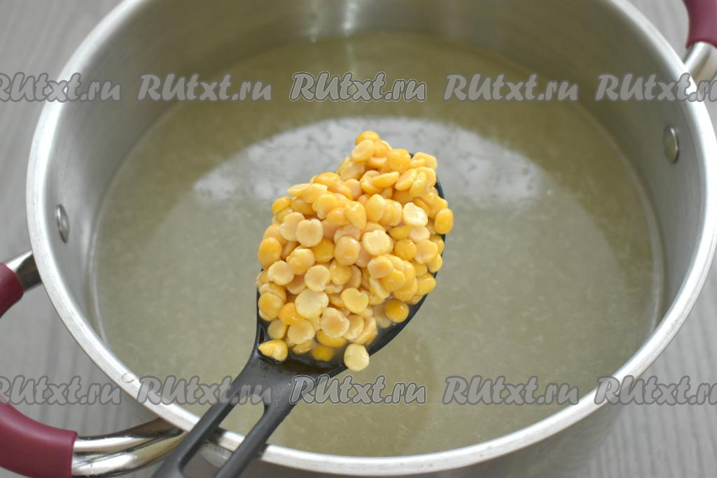 У меня был колотый горох, на его варку после замачивания с момента закипания требуется обычно 25-30 минут. Если вы возьмёте не колотый горох, то на его варку потребуется не менее часа.