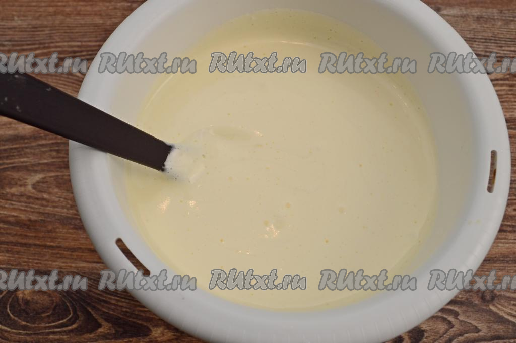 Итоговое тесто для шоколадного пирога должно напоминать сметану средней густоты, оно будет достаточно широкой лентой стекать с лопатки.
