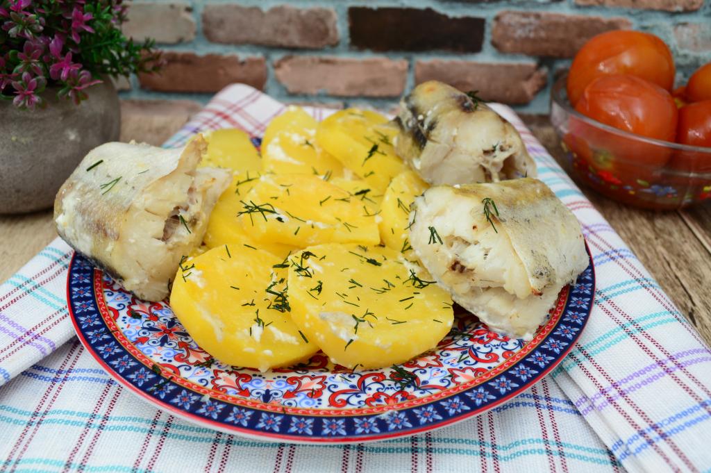 Разные сорта картофеля запекаются различное время. Если через 50 минут картошка не будет готова, рыбу следует вытащить из духовки (она уже будет полностью готова) и продолжить запекать картофель в духовке до готовности.