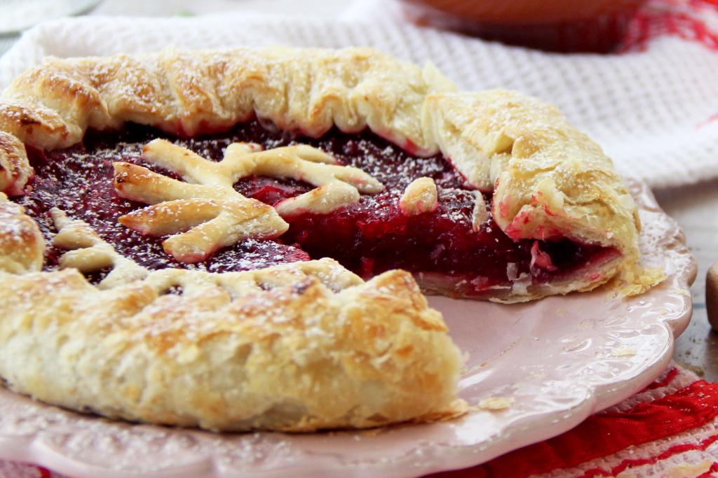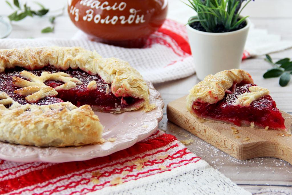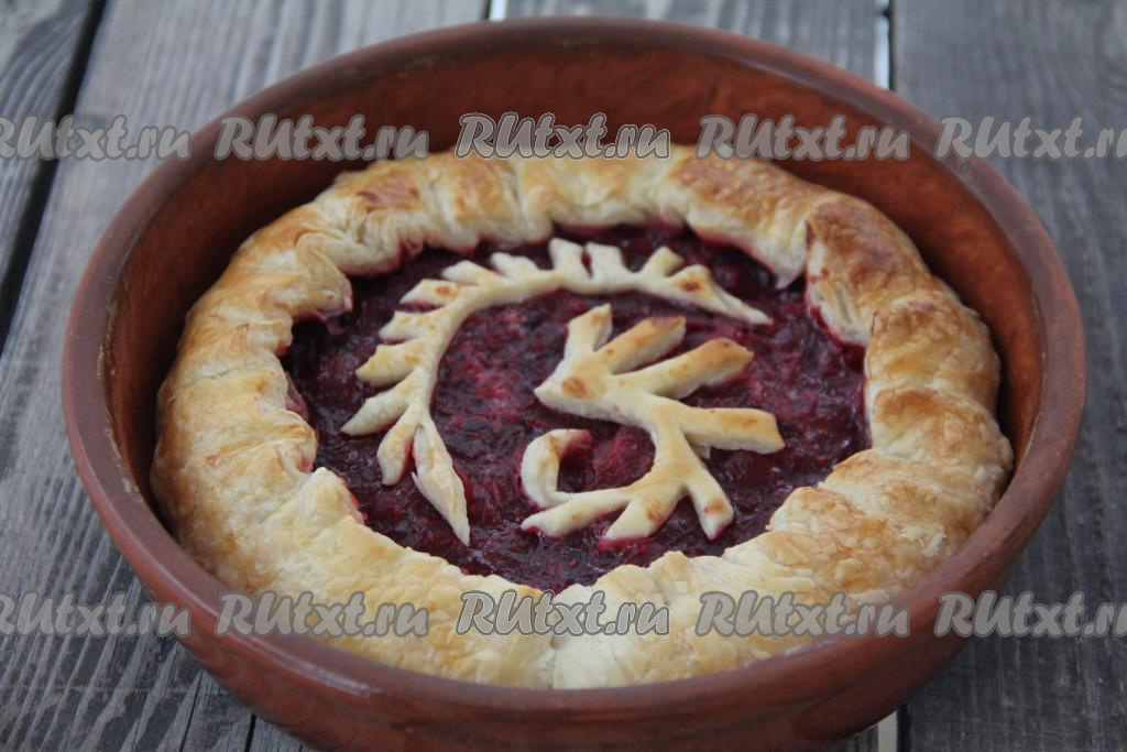Выпекать пирог с клюквой минут 25 (до золотистого цвета слоёного теста).