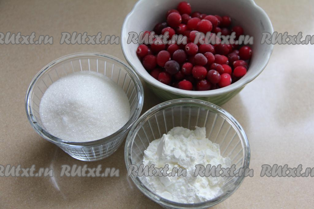 Прежде всего нужно приготовить начинку. Клюкву можно взять как свежую, так и замороженную. Свежую клюкву нужно промыть водой, слегка обсушить. Замороженные ягоды можно не размораживать.