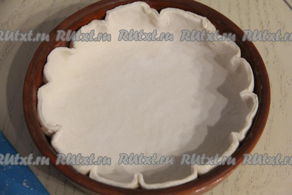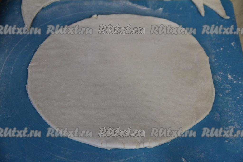 Срезать уголки раскатанного теста, сформировав круглый пласт.