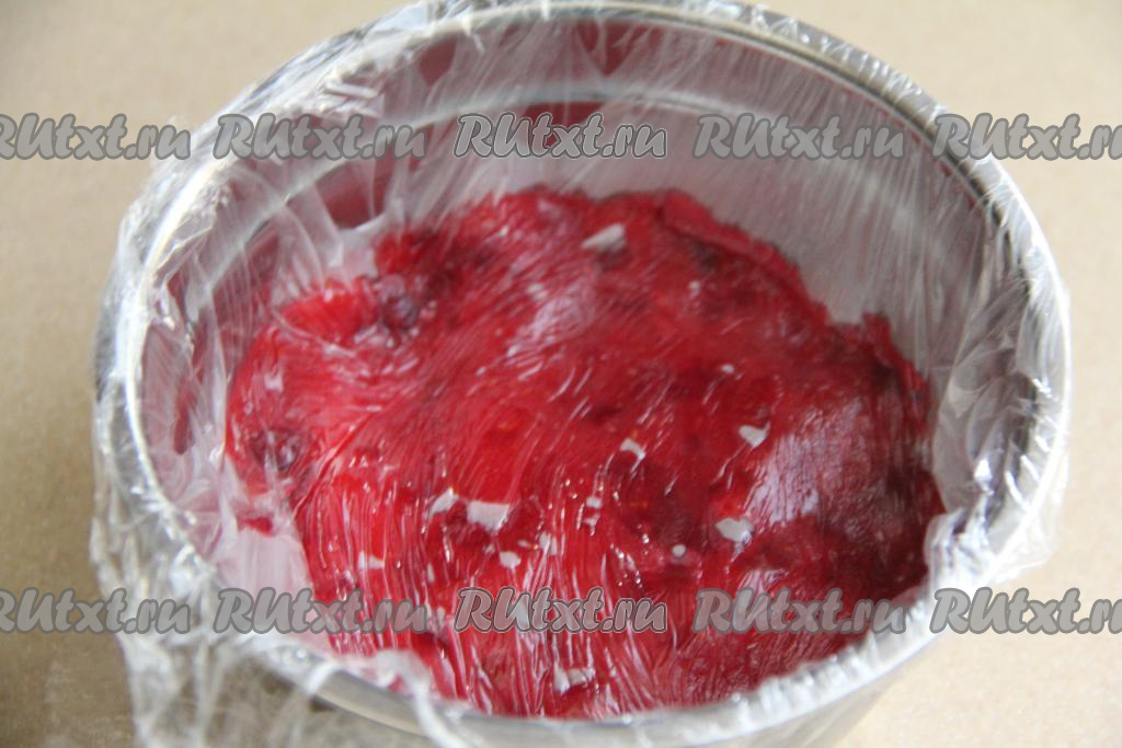 Благодаря тому, что плёнка лежит на клюкве, на поверхности начинки не будет образовывать корка.