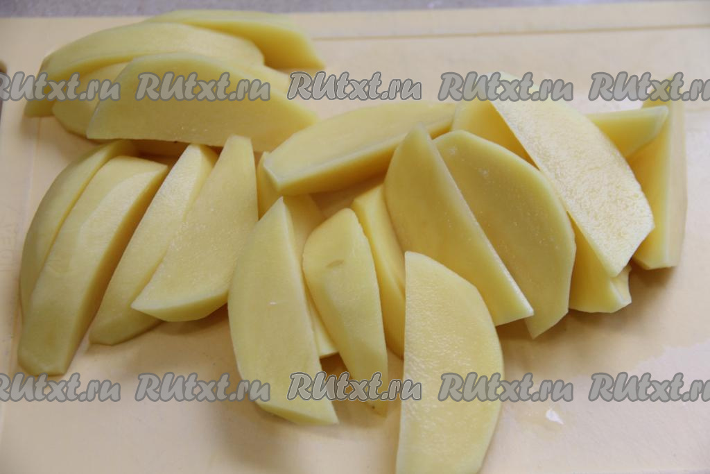 Картошку, лук и чеснок почистить. Нарезать картошку на крупные дольки.