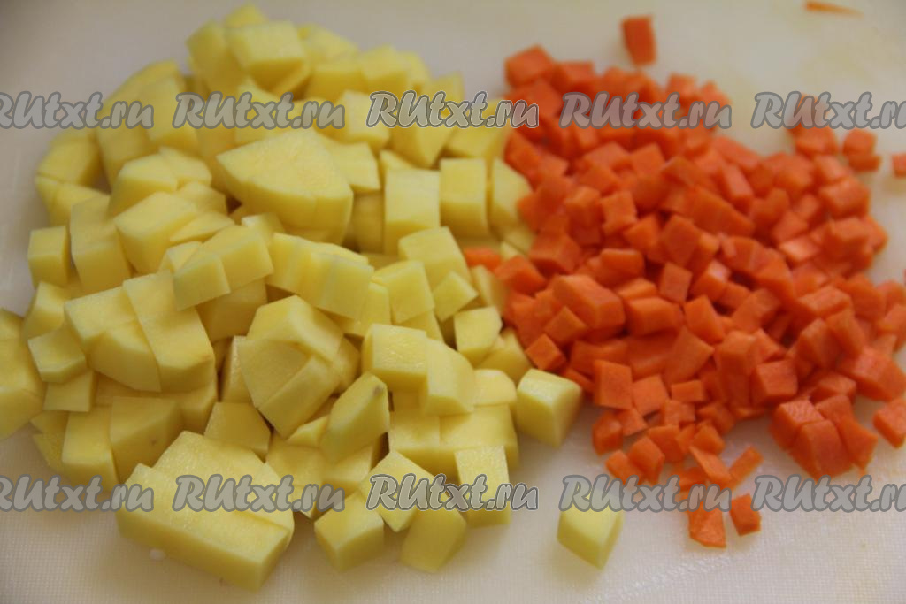 Картошку и морковь нарезать на кубики.