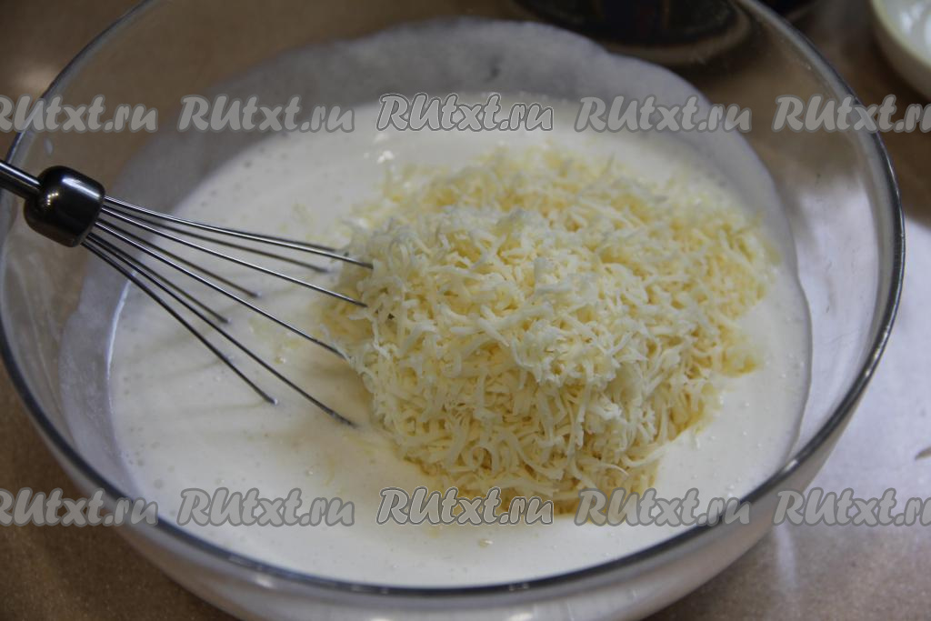 В получившуюся смесь выложить сыр, натёртый на мелкой терке.