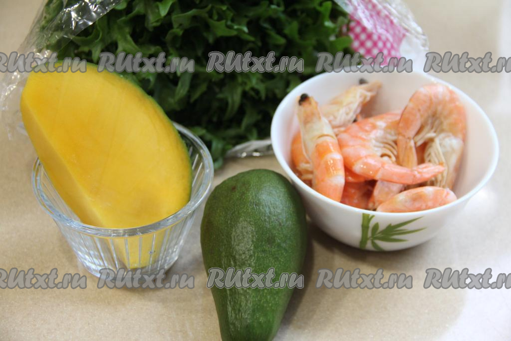 Предлагаю приготовить вкусный, полезный салат из манго с авокадо и креветками. Салатик получается очень аппетитным. Готовить его стоит на один раз и сразу подавать к столу, чтобы ингредиенты не заветрились. Перед подачей салат поливается пряной заправкой, которая делает вкус и аромат блюда более ярким.