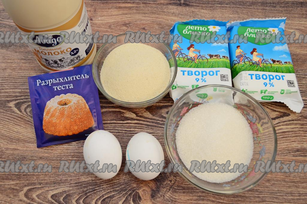 Подготовить продукты. Творог и молоко можно взять любой жирности. Творог я взяла жирностью 9%, молоко - жирностью 3,2%.