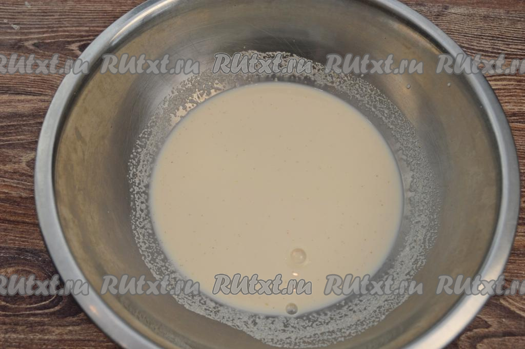 Молоко немного подогреть (я подогрела в микроволновке в течение 30 секунд, можно подогреть на плите). Тёплое молоко перелить в миску, всыпать манку, перемешать и оставить минут на 15-20, чтобы манка набухла. За это время смесь молока и манки нужно будет 2-3 раза перемешать.