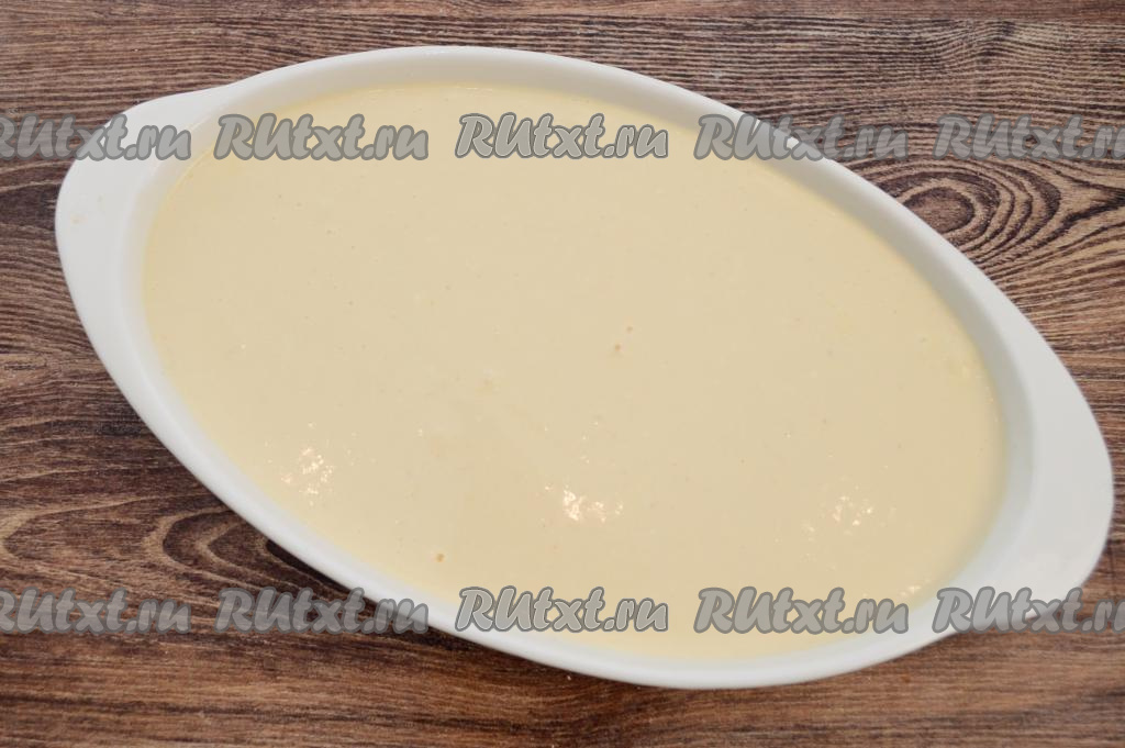 Форму для выпечки смазать растительным маслом. Вылить тесто в форму, разровнять.