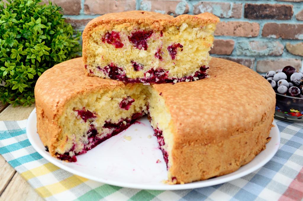 Готовый бисквит с ягодами достать из духовки, остудить 5 минут в форме, затем вынуть из формы, аккуратно переложить на решётку и оставить до полного остывания. Бисквит получается нежным, воздушным, поэтому я стараюсь дать ему остыть и "отлежаться", как минимум, в течение, 2-3 часов. Затем переложить на тарелку и можно подавать к столу.