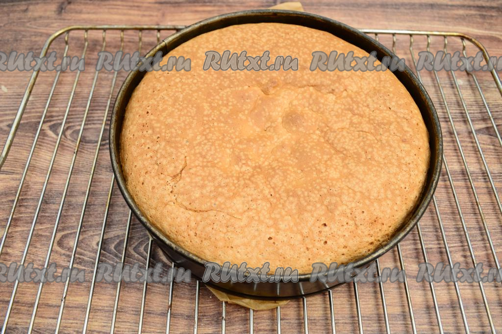 Готовность выпечки проверяйте сухой деревянной зубочисткой, для этого проколите бисквит в середине, если зубочистка после прокола останется чистой, без следов теста, значит бисквит готов, пора доставать его из духовки.
