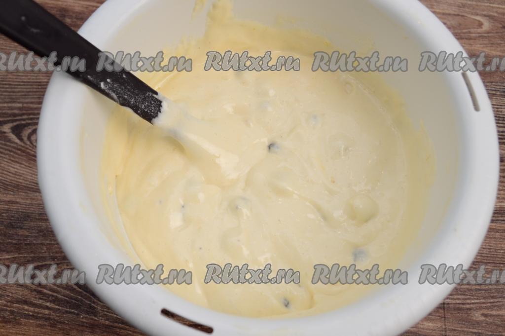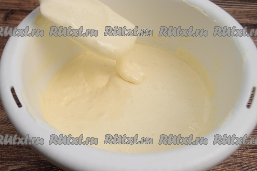 Итоговое бисквитное тесто должно получиться воздушным, однородным, напоминающим сметану средней жирности, оно будет достаточно широкой лентой стекать с лопатки.