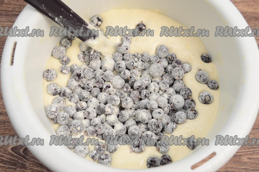 Аккуратно лопаткой вмешать чёрную смородину в тесто.