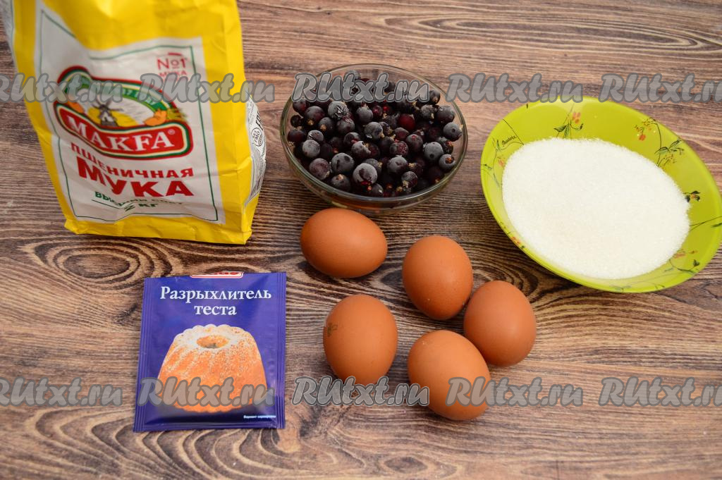 Подготовить продукты. Чёрную смородину можно взять и замороженную, и свежую. У меня были замороженные ягоды без наледи, я их не размораживала. Свежие ягоды нужно будет промыть водой, а затем обсушить, разложив на бумажном полотенце. Яйца для приготовления бисквита я взяла размером С1.