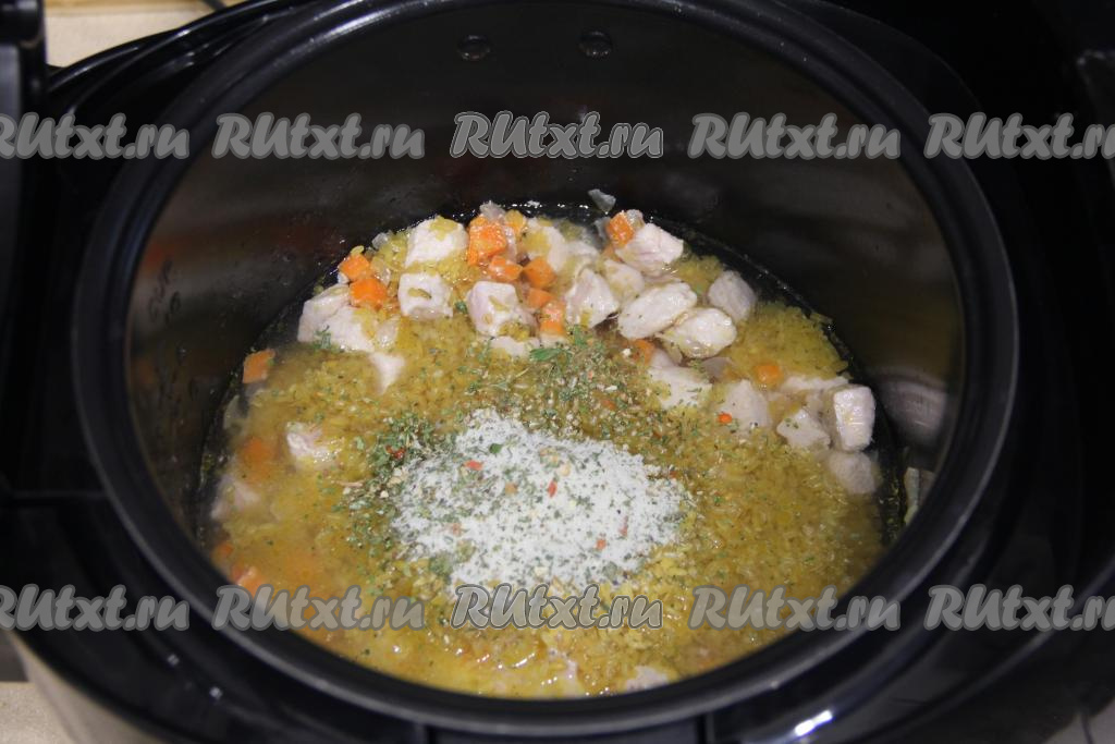 Установить на 45 минут режим "Плов". Готовить до звукового сигнала.