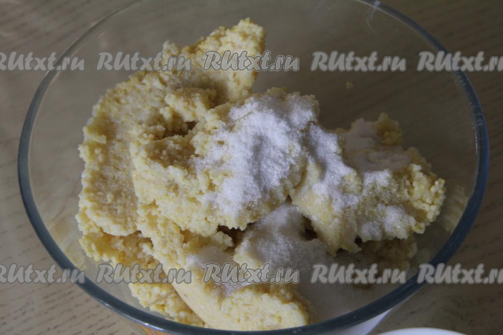 В остывшую пшённую кашу добавить ванильный сахар и сахар, всыпать соль.