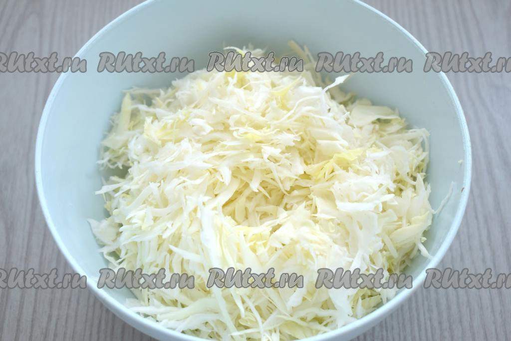Сразу же добавляем в кастрюлю капусту, нарезанную на тонкие полоски. Даём супу закипеть, варим картофель с капустой 20 минут (до мягкости овощей) на небольшом огне.